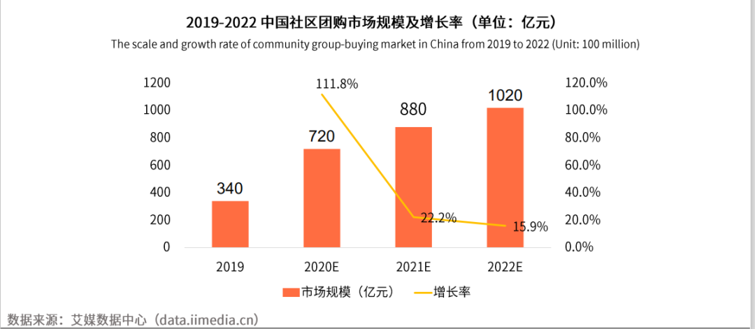 "今年是社区团购的3.0时代!"据iMedia Research数据发表的《2020上半年中国社区团购行业专题研究报告》显示:2020年社区团购市场发展增长率超过100%,市场规模已达到650亿。预计中国社区团购市场未来保持良好的姿态,到2022年中国社区团购市场规模有望达到千亿。